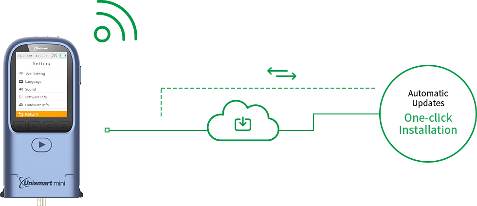 The Unismart Mini device stays updated with automatic downloads and installations.